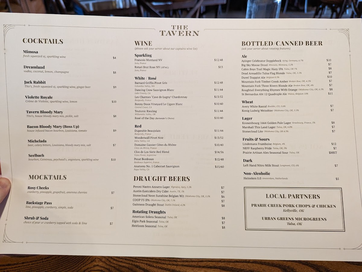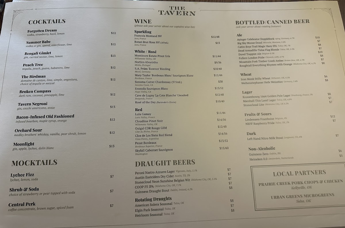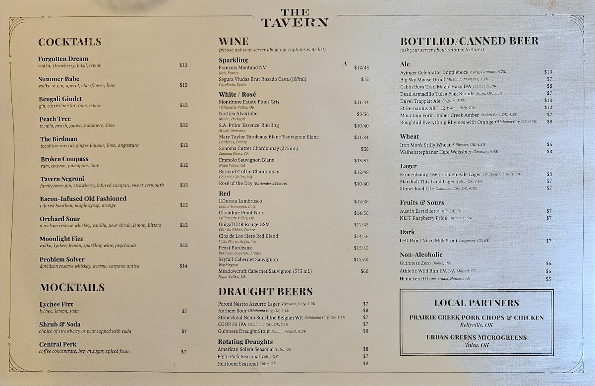 The Tavern Tulsa Menu (2025 Update)